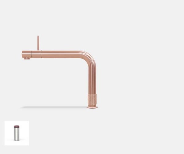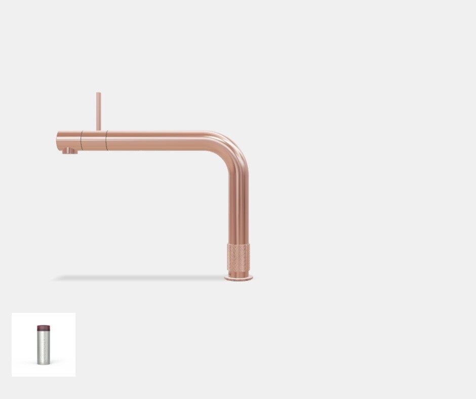 De CUBE komt onderin je keukenkastje naast het Quooker-reservoir voor kokend water. Aan de CUBE zit een CO2-cilinder, een koolzuurfles, waarmee je ongeveer 60 liter bruisend water uit je Quooker-kraan kunt tappen.